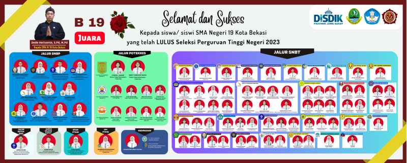 Selamat untuk siswa/siswi SMA Negeri 19 Kota Bekasi yang telah diterima di Perguruan Tinggi Negeri