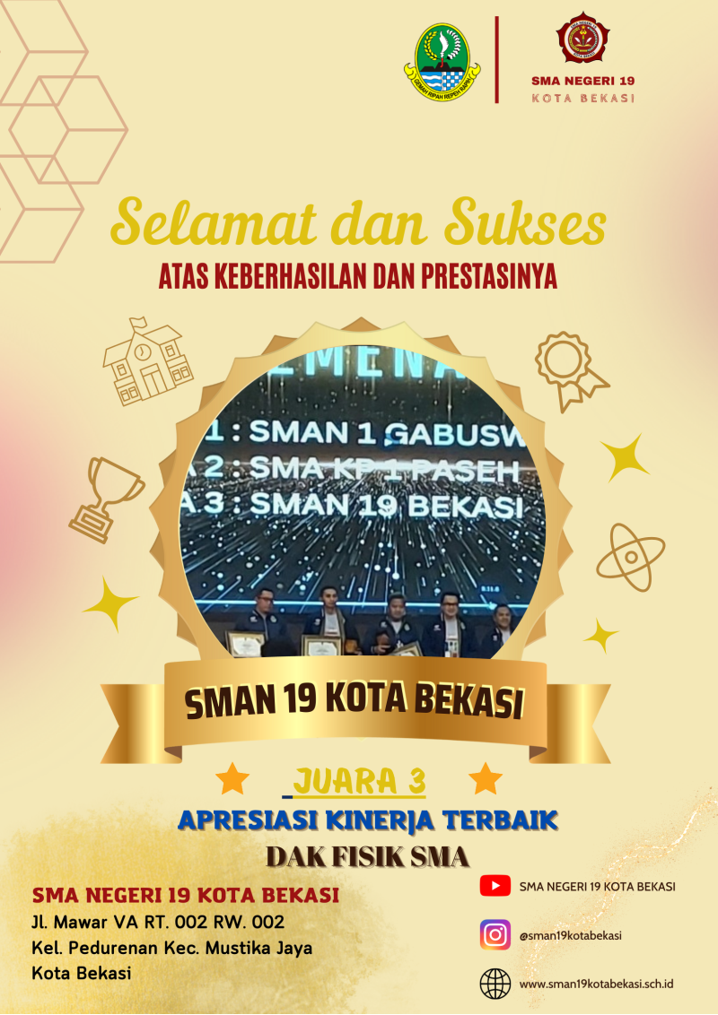 SMAN 19 Kota Bekasi meraih Juara ke-3 dalam penghargaan Prestasi Kinerja Terbaik kategori DAK FISIK SMA