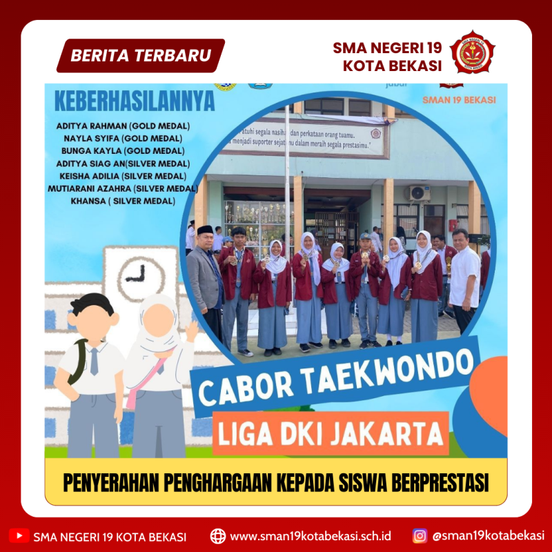 Siswa/ siswi SMAN 19 Kota Bekasi memperoleh Juara Gold Medals dan Silver Medals pada cabang olahraga Taekwondo