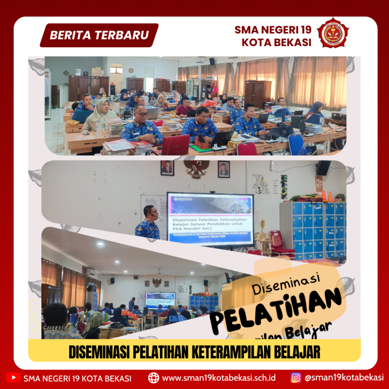 Diseminasi Pelatihan Keterampilan Belajar Satuan Pendidikan untuk PKB Mandiri Gel.1 telah dipaparkan oleh Bapak Dede Heriyanto, S.Pd.,M.Pd. pada hari Selasa, 01 Oktober 2024 kepada seluruh tenaga kependidikan SMAN 19 Kota Bekasi.