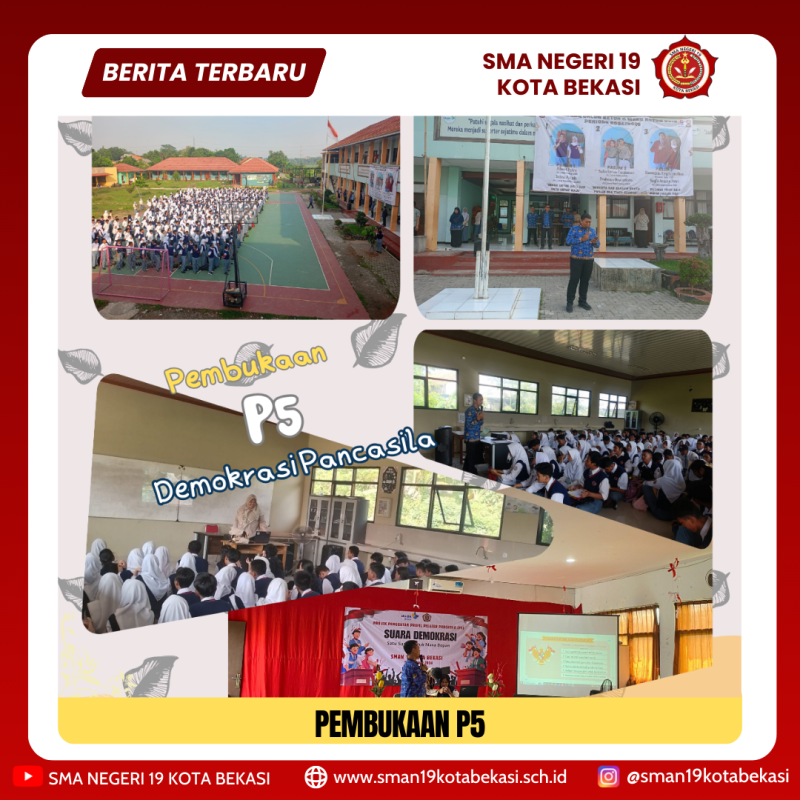 Pembukaan Kegiatan P5 dilaksanakan pada tanggal 01 Oktober 2024 oleh Kepala SMAN 19 Kota Bekasi. Dengan materi Demokrasi Pancasila di Indonesia, yang diisi oleh narasumber guru pendidik mapel PPKn.