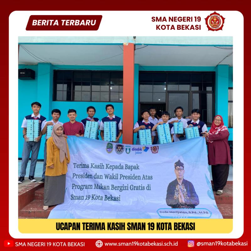 Terima kasih untuk Presiden & Wakil Presiden Indonesia yang sudah merealisasikan Program Makanan Bergizi Gratis untuk SMA Negeri 19 Kota Bekasi.