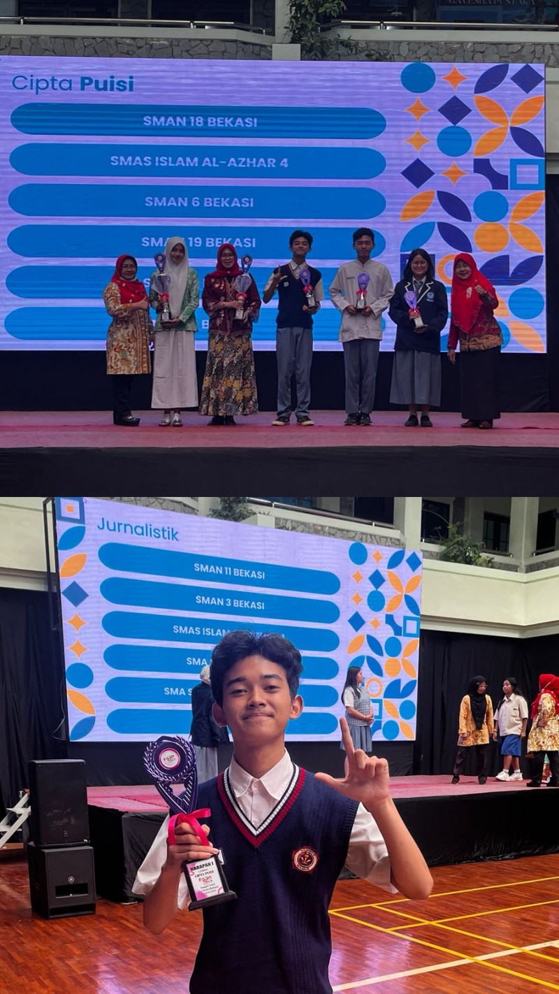 Piala Juara Harapan 1 Cipta Puisi pada ajang FLS3N 2025 Tingkat Kota Bekasi perwalian siswa kita atas nama Fahri Novan Dwi Kusnadi.